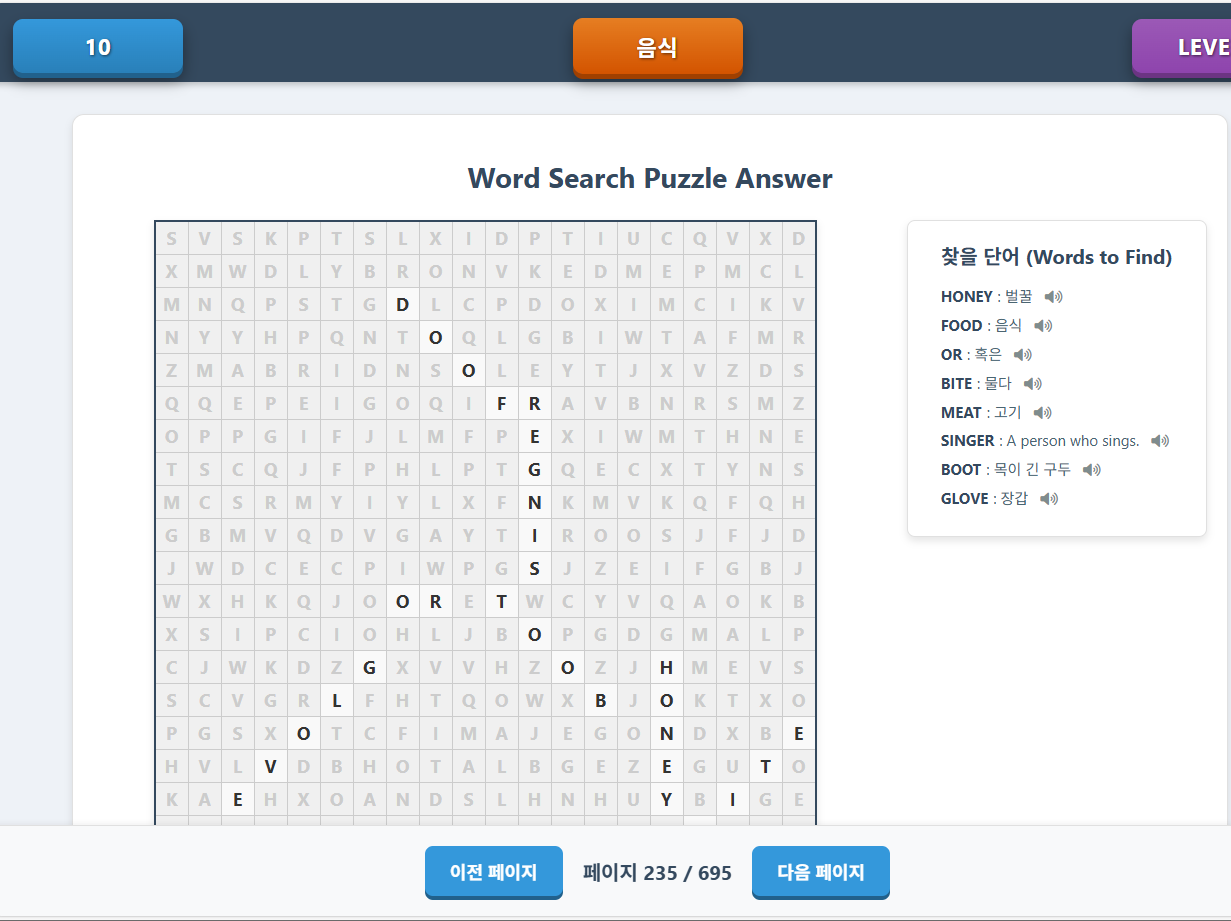 단어 의미를 힌트로 제공하고 찾기 - ✏️ 모음 넣기 (Vowel Scramble)